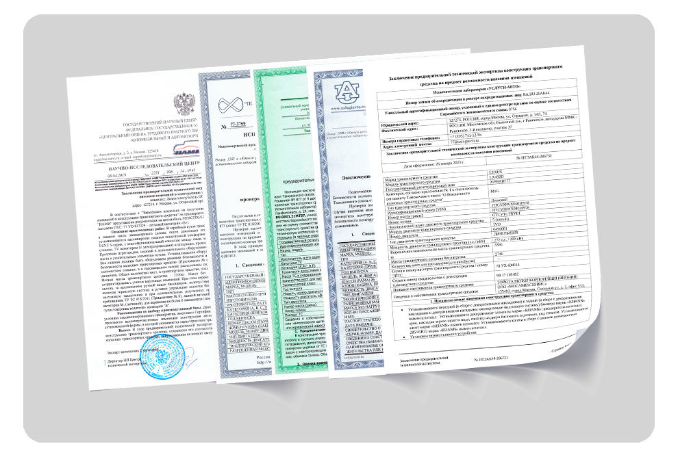 — Заключение предварительной технической экспертизы конструкции транспортного средства на предмет возможности внесения изменений